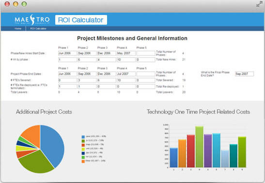 Maestro’s Location ROI calculator is a custom calculator that provides return on investment for global location specific moves , adds and changes along with helping plan for resource migration around the country, EMEA and APAC.